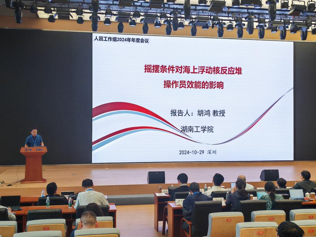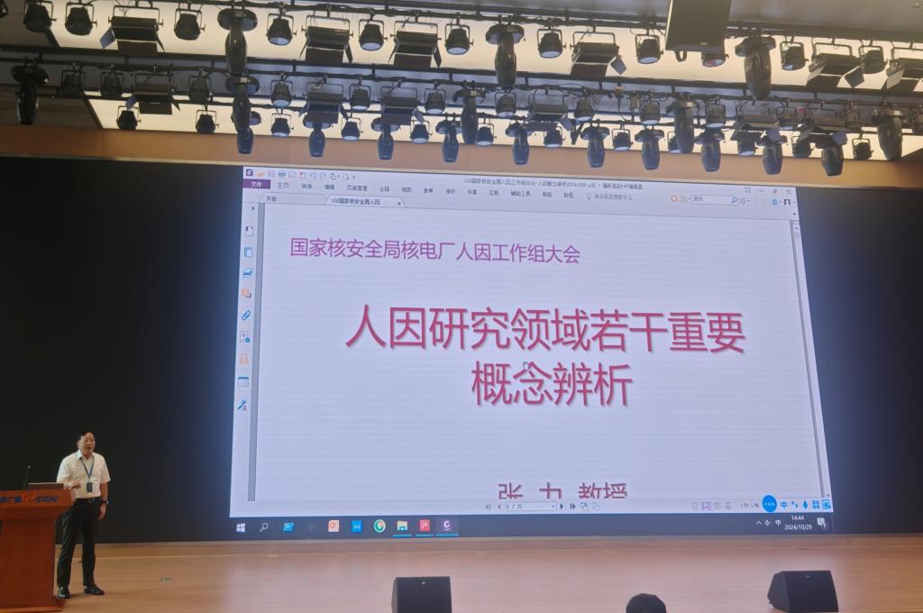 会议首先听取了核电厂运行人因技术组、人因工程设计与审评技术组、调试人因技术组、人员可靠性分析技术组2019-2024年的工作总结及工作计划。在10月29日的核电人因安全专题学术研讨会上,张力教授受邀作“人因研究领域若干重要概念辨析”主题报告,他基于多年的人因理论研究及核电项目实践经验,深入浅出地阐述了对人因研究领域核心概念的见解和思考。胡鸿教授受邀作“摇摆条件对海上核反应堆操作员效能的影响”研究报告,报告展示了我院在人因研究新领域取得的突破与成果。