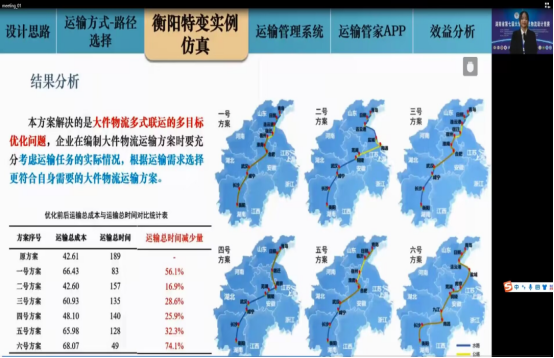 本届竞赛经过预选赛、初赛选拔,全省16所高校的36支队伍入围决赛。竞赛以分赛道模式进行,赛道一为“服务双循环新发展格局的物流枢纽经济发展之路”,赛道二为“服务制造强省的大件物流探索之路”。来自吉林大学、武汉理工大学等高校的多位教指委专家和来自湖南星沙物流投资有限公司、特变电工衡阳变压器有限公司的行业专家担任比赛评委。