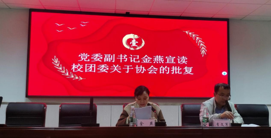 金燕宣读校团委关于协会的批复文件。