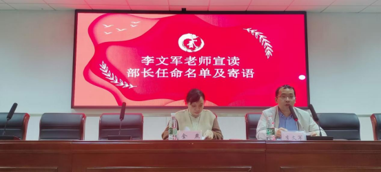李文军宣布协会第一届会长、部长名单,并寄语协会能大胆创新,积极参与活动,锻炼思维能力,勤奋学习,多向老师请教,多学多问,做新时代追梦的新青年。希望成员多举办高水平、高质量活动,将协会办出特色、办出品牌、办出风采,彰显出材料学院的特色与风采。