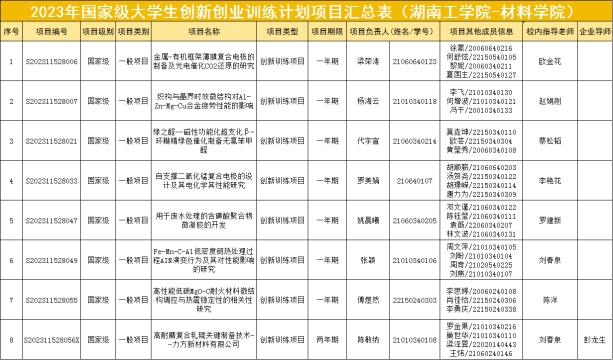 Beat365唯一官方网站2023年材料学院纵向项目信息表