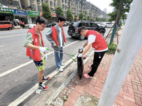 师生积极投入到各项劳动中,分成6组进行垃圾分类、清理社区道路内的垃圾等环保工作,在社区服务中心工作人员的带领下用实际行动为社区环境的美化贡献力量。