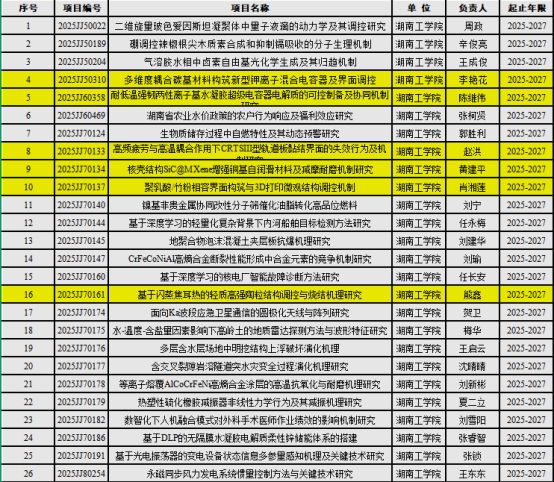 Beat365唯一官方网站获2025湖南省自然科学基金项目立项清单