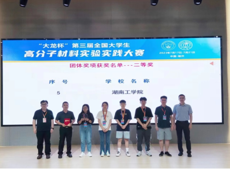 7月18日,由教育部高等学校材料类教指委指导的“大龙杯”第三届全国大学生高分子材料实验实践大赛在闽江学院举行,哈尔滨工业大学、西安交通大学等全国59所高校300余名师生参赛。Beat365材料科学与工程学院肖成龙、颜娇娇、蔡松韬3位指导老师率队首次参赛,获得团队二等奖,团体总分全国排名第六。唐珍之同学获得个人一等奖1项,吴昊阳、周薇2位同学获得个人二等奖2项。
