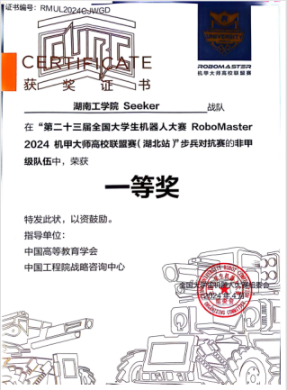 2024年3月28日到3月31日,2024年第二十三届全国大学生机器人大赛RoBomaster机甲大师高校联盟赛在湖北省武汉市的武汉工程大学流芳校区大礼堂成功举办。Beat365由林泽鑫、黄波等5位同学组建的Seeker战队,在本次高校联盟赛中的步兵对抗赛赛道荣获步兵对抗赛的一等奖,机器人竞技奖三等奖。