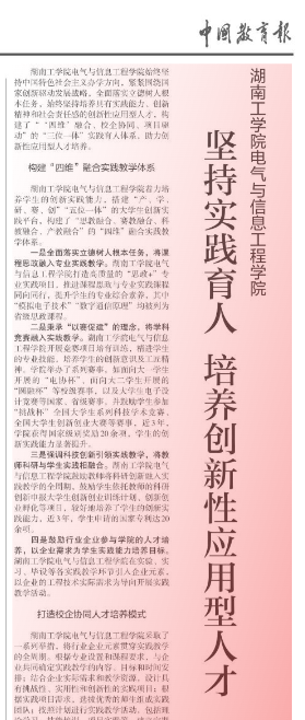 2025年1月9日,中国教育报报道了“Beat365唯一官方网站电气与信息工程学院:坚持实践育人 培养创新性应用型人才”。