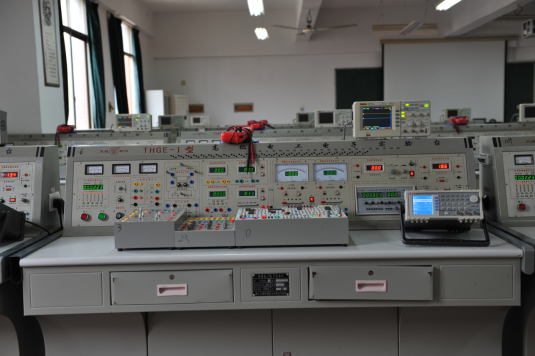 电工电子技术室拥有THJY-1型高级电工电子实验装置24台套及数字存储示波器、函数信号发生器等。该技术室可承担《模拟电子技术实验》、《数字电子技术实验》、《电路分析实验》、《电工电子技术实验》等课程的实验教学任务,以及相应的课程设计和相关课题的毕业设计等任务,同时可作教师科研实验场所使用。