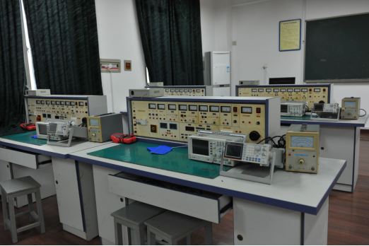 模电技术室共有实验台套数97台套, 主要设备有JD-2000通用电学实验台12台及数字存储示波器、函数信号发生器、直流稳压电源等,主要面向电气与信息工程学院各专业学生。主要承担《模拟电子技术实验》等专业基础实验课教学任务,除完成基本教学任务外,其它时间属于开放时间,学生可以随时进入实验室进行各种设计,焊接、测试或学习交流等。