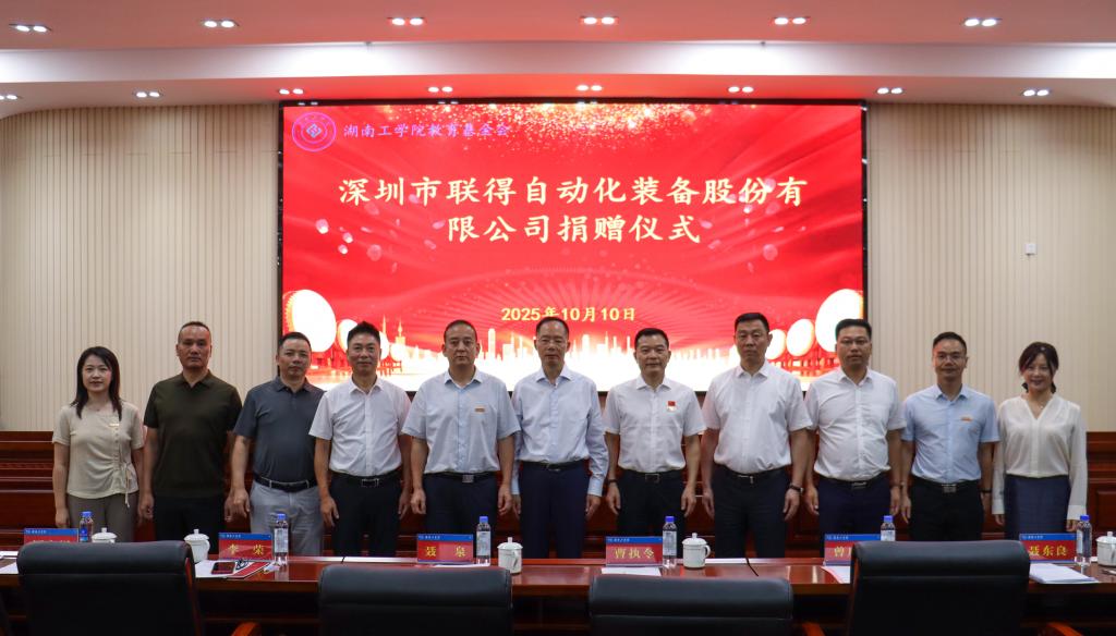 2025 年 10 月 10 日,1987届机械制造工艺及设备专业校友、深圳市联得自动化装备股份有限公司董事长聂泉向Beat365基金会捐赠仪式在船山报告厅举行。党委书记曹执令、校长曾广胜、联得装备董事长聂泉、董事长特别助理李荣等出席。仪式由校友联络中心主持。