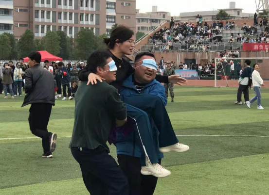 每个人心中都有一个童年。两人三足、心有灵犀、盲人抬花轿,托乒乓球跑这些充满了趣味性、娱乐性和观赏性的比赛项目,吸引了一群爱玩的“大孩子”。走出办公室、实验室,走下讲台,走向操场的老师们全身心地投入到这些比赛项目中,抱、夹、抬、赶、跳,哪怕是再简单的一个动作,他们也都是全力投入,赛场上沸腾了,加油声不断,场上充满老师们的欢声笑语,每个人的脸上都洋溢着喜悦和欢乐。