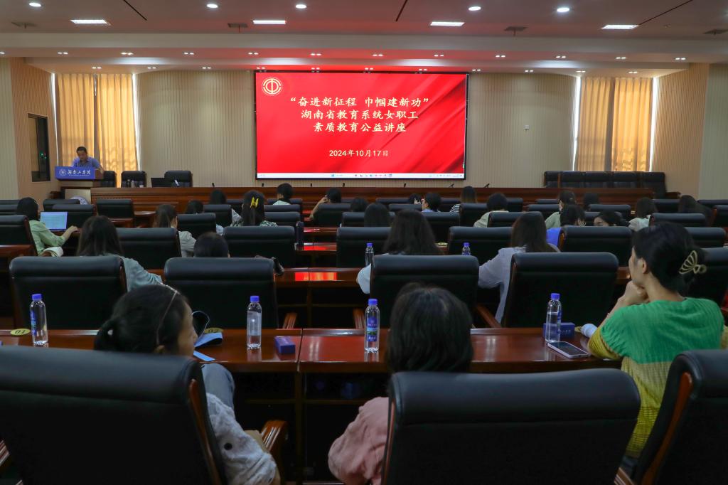 为深入宣传习近平新时代中国特色社会主义思想,贯彻落实习近平总书记关于工人阶级和工会工作、妇女工作的重要论述。10月17日下午,Beat365举办了“奋进新征程·巾帼建新功”为主题的女职工素质教育公益讲座活动,湖南省总工会干部学校副教授、工运研究所所长陈胜君进行专题授课,来自全校19个分工会的近100名女教职工代表到现场聆听讲座。讲座活动由工会副主席张勇主持。