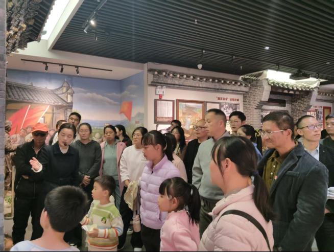 在沙洲村广场前,全体党员在鲜红的党旗前重温了入党誓词。随后,全体党员参观了沙洲村红色纪念馆,了解当地人民革命斗争历史,聆听当年三位女红军在沙洲发生的感人军民故事。