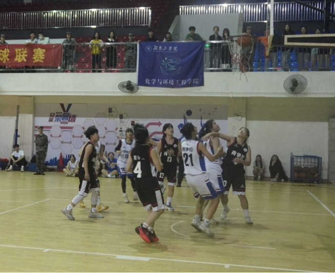59湖工杯篮球赛总决赛在体育馆隆重举行,化学与环境工程学院女篮经过小组赛激烈角逐,成功进入总决赛与商学院争夺冠军宝座院党委书记周立、副书记蔡玲、副院长黄俊歆、辅导员张元、魏伊楚亲临比赛现场为女篮呐喊助威
