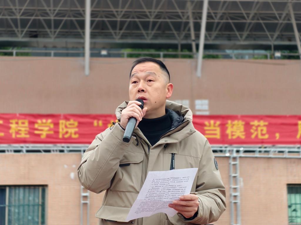 院党委书记李来丙在国旗下发表重要讲话。他从"勤、思、悟、践"四个维度诠释雷锋精神的时代内涵,强调全体师生要立足专业特色,将雷锋精神融入科研创新与社会服务中,勤学雷锋精神,深思精神实质,悟透奉献之道,践行雷锋精神。他特别指出,新时代的雷锋精神应是知行合一的生动实践:既要如海绵吸水般勤学理论精髓,又要像春雨润物般深入理解精神内核,更要化作实干火炬照亮前行道路。
