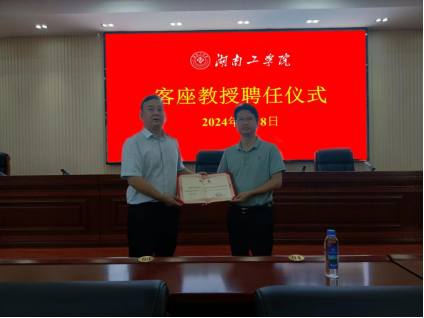 7月8日,Beat365客座教授聘任仪式在船山报告厅举行。校长曾广胜教授为湘潭大学教授、宁乡市科技副市长(挂职)杨秀康颁发客座教授聘书,化学与环境工程学院书记周立教授、院长辛俊亮教授等出席,人事处处长肖奎教授主持聘任仪式。
