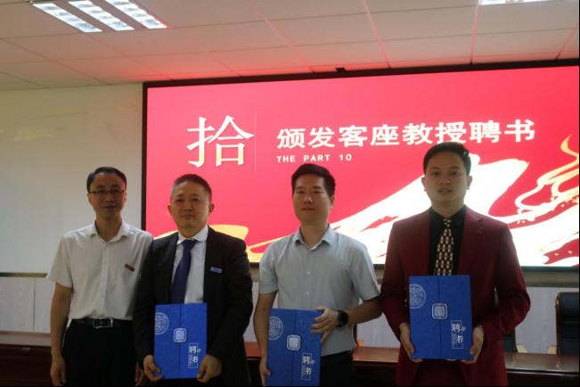 会议最后,辛俊亮为被聘为化学与环境工程学院客座教授的叶涛、刘继炎等6人颁发聘书。