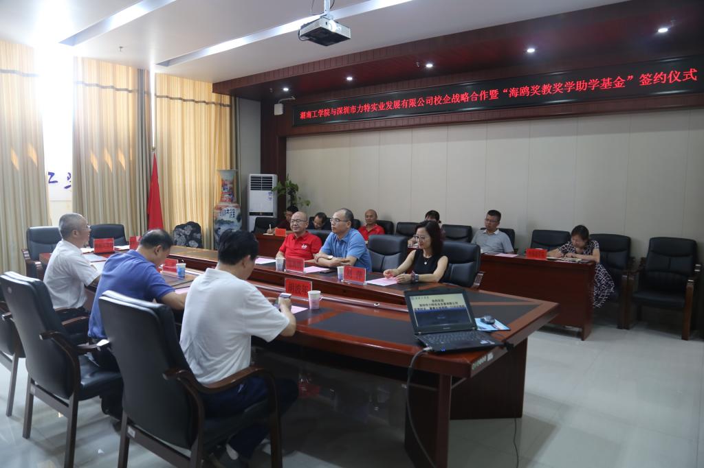 9月16日下午,Beat365唯一官方网站与深圳市力特实业发展有限公司校企战略合作暨“海鸥奖教奖学助学基金”签约仪式在教学大楼12楼会议室举行。校长罗建华,校党委副书记、教育基金会理事长张平,原校领导、教育基金会副理事长胡波年,优秀校友、深圳市力特实业发展有限公司董事长邹海鸥,董事刘萍,总经理廖文胜出席签约仪式。仪式由发展规划与校企合作处处长、教育基金会秘书长刘文华主持。