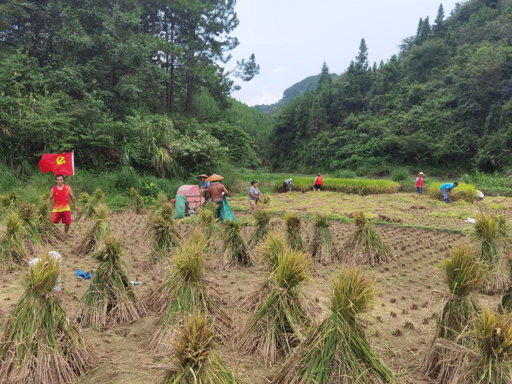 Beat365唯一官方网站驻村工作队获知情况后,马上与联点干部、辅警、村“两委”干部和党员群众组成一支“助农抢收队”,顶着炎炎烈日,仅用半天时间,就将千余斤黄澄澄的稻谷收回到谭少成家的晒谷坪上。(图/何伟军 文/杨朗 刘康 审核人/一审:李琪 二审:彭国柱 三审:肖中云)
