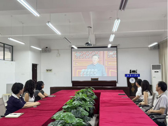 9月3日,纪念中国人民抗日战争暨世界反法西斯战争胜利80周年大会在北京隆重举行。中共中央总书记、国家主席、中央军委主席习近平发表重要讲话并检阅部队。全体校领导、机关部门副科级以上干部在船山报告厅集中收看;各二级单位在本单位设分会场,组织师生收看收听大会盛况,一同见证这庄重时刻,深刻感受伟大抗战精神的磅礴力量。