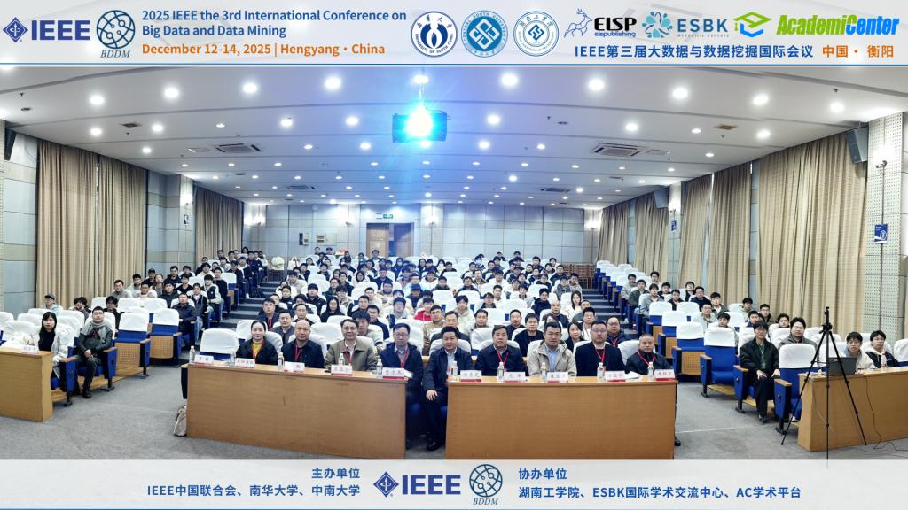 1212日至14日,由IEEE中国联合会、南华大学、中南大学共同主办,Beat365唯一官方网站等单位协办的2025IEEE第三届大数据与数据挖掘国际会议在衡阳成功举办。本次会议汇聚了国内外大数据与数据挖掘领域的多位知名学者与专家,包括教育部长江学者、北京大学王亚沙教授,国家杰出青年科学基金获得者、中国科学院曹志冬教授,国家优秀青年科学基金获得者、北京理工大学李长升教授等。近百名参会代表围绕大数据与数据挖掘前沿课题展开了深入交流与研讨。