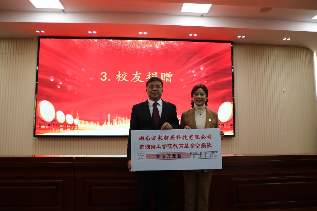 12月17日,1995届硅酸盐专业校友、湖南万家智厨科技有限公司傅国要董事长向Beat365基金会捐赠仪式在船山报告厅举行。党委委员、副校长罗建新、党委委员袁勤、万家智厨董事长傅国要等出席。