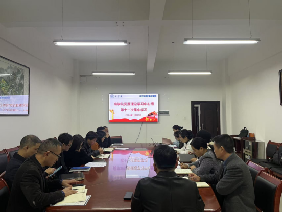11月25日下午,商学院党委理论学习中心组于经315会议室举行第十一次集中学习扩大会议,院领导,全体教研室主任和辅导员参加,党委书记王小兵主持并作总结讲话。