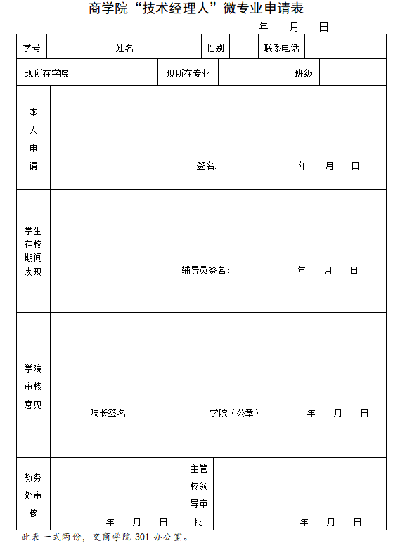 商学院“技术经理人”微专业申请表