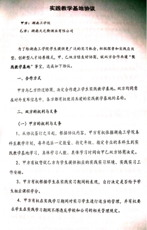 湖南天之衡酒业有限公司实践教学基地