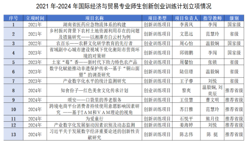 本专业学生获大学生创新创业竞赛国家银奖1项,省级一等奖1项,省级二等奖2项、三等奖6项,承担创新创业训练计划项目10余项,获湖南省大学生企业模拟经营竞赛一、二、三等奖共7项,全国大学生“新道杯”沙盘模拟经营大赛二等奖1项,湖南省大学生电子商务大赛一、二、三等奖20余项,全国金融与证券投资模拟实训大赛一、二、三等奖30余项,“挑战杯”创业计划大赛省级银奖、铜奖各1项。