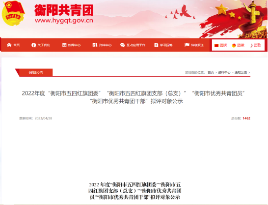 附件:2022年度“衡阳市五四红旗团委”“衡阳市五四红旗团支部(总支)”“衡阳市优秀共青团员”“衡阳市优秀共青团干部”拟评对象公示