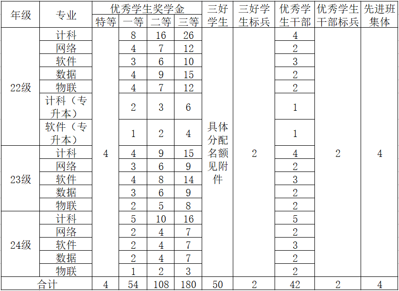 (优秀学生奖学金按年级专业及格率分配名额,