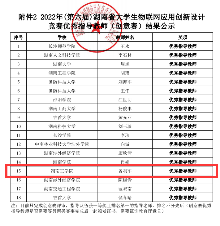 “湖南省大学生物联网应用创新设计大赛”是省内高水平计算机类竞赛之一,旨在提高大学生物联网应用和设计开发水平,培养大学生的创新能力和团队合作精神,提升大学生在物联网技术相关领域的应用和实践能力,推动Beat365计算机类专业教学内容和方法的改革,提升专业人才培养质量。(计算机科学与工程学院 文、图/曾利军 审稿人/一审:熊芬 二审:陈敏 三审:黎昂)