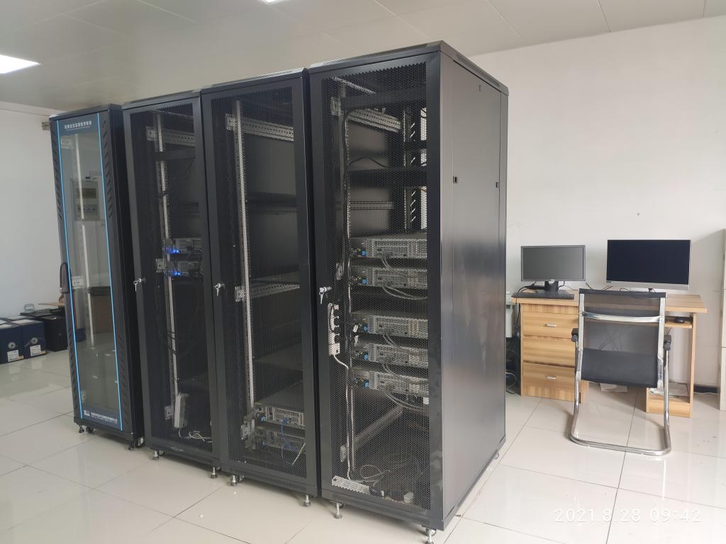 云计算实验室,共5个实验室分室,实验总面积651平方米,设备总价值260万元。主要设备包括7台云服务器和280个终端,服务器和终端之间通过光纤直连提供虚拟云桌面系统。
