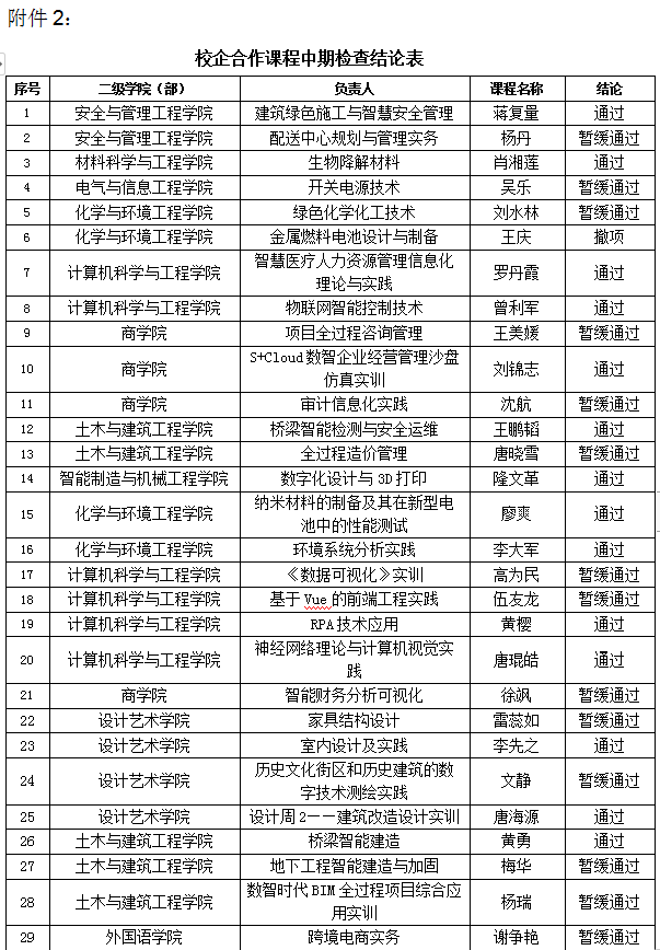 根据《关于开展对第一批校企合作课程结项验收和第二批校企合作课程中期检查工作的通知》(校教务〔2024〕236号),经专家评审,确定了结题验收和中期检查结果。现将结题验收和中期检查结果予以公布。