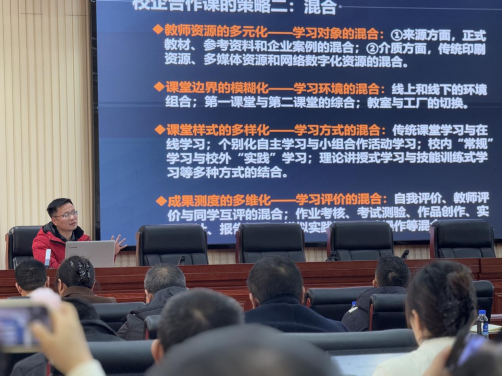 会上,教务处处长李理教授围绕校企合作课程的重要地位、立项原则、建设策略以及课程群建设的规划和原则等方面,向与会人员进行了深入浅出的解读,并提出了具体的建设思路。李理处长特别强调了课程建设团队的重要性和内涵建设,为Beat365课程建设指明了方向。