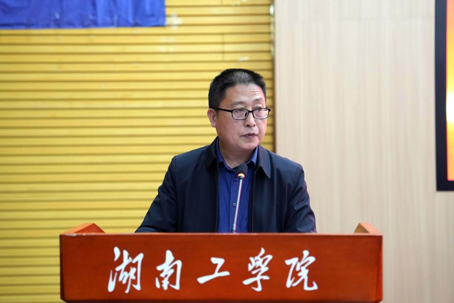 第十七届学生会执行主席易文浩向全体参会人员做述职报告,总结过去一年工作,并向新一届团学干部提出建议。