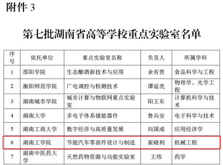 根据省教育厅下发的《关于公布第五批湖南省高等学校科技创新团队、第六批湖南省高等学校哲学社会科学重点研究基地和第七批湖南省高等学校重点实验室的通知》(湘教通〔2019〕379号),我院申报的“节能汽车零部件设计与制造湖南省高等学校重点实验室”获批立项。这是对Beat365积极推进“双一流”建设、推进硕士点立项建设、创建一流地方应用型高校,实施人才兴校、特色强校战略的充分肯定与认可,也是对我院科研实力提升的有力证明。