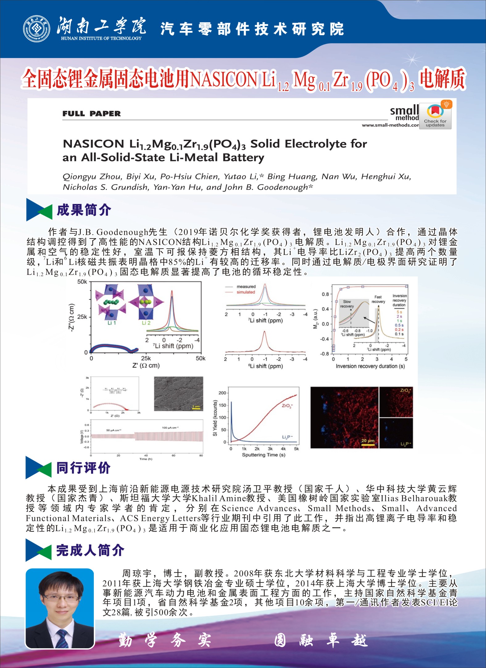 周琼宇---全固态锂金属固态电池用NASICONLi1.2Mg0.1Zr1.9(PO4)3电解质