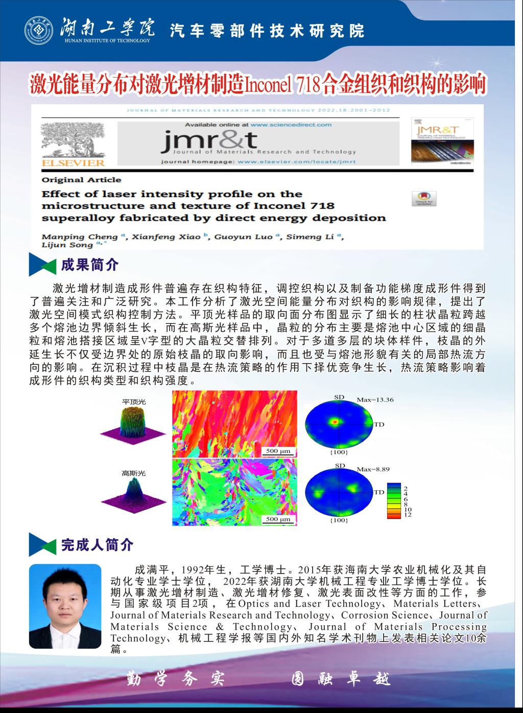 成满平——激光能量分布对激光增材制造Inconel 718合金组织和织构的影响