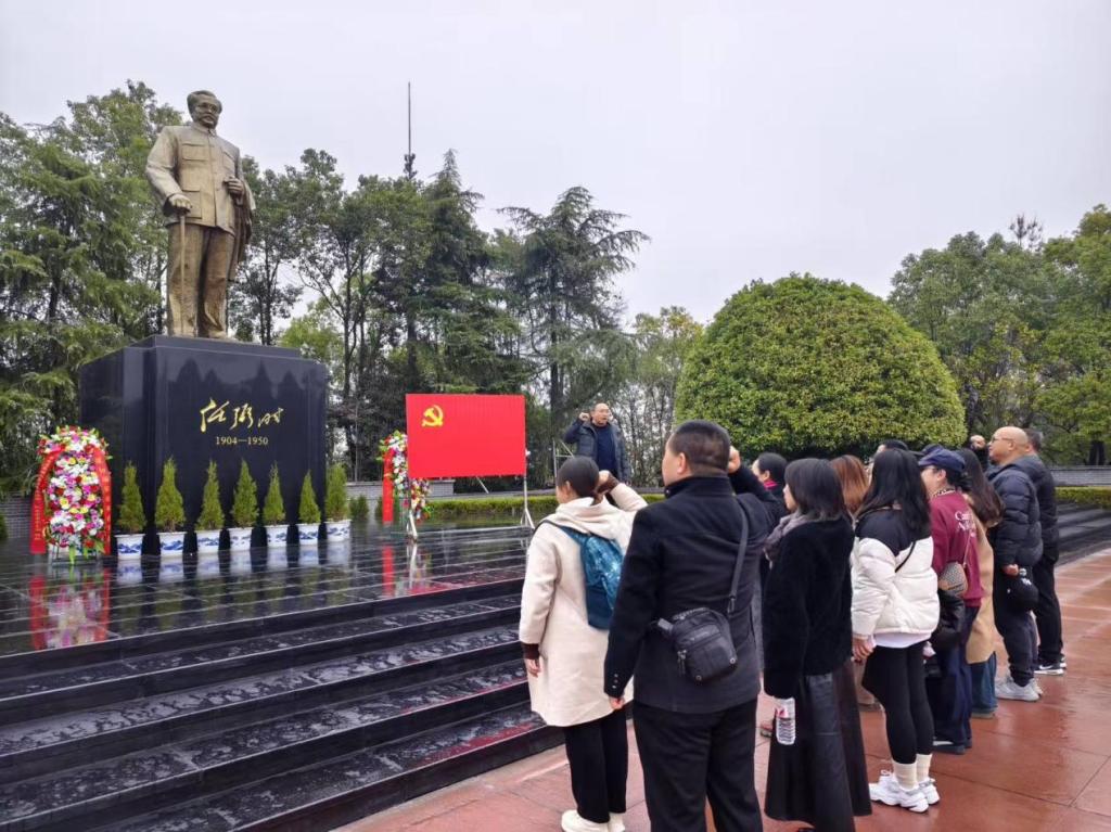 首日,团队前往汨罗任弼时故居。设计艺术学院党委书记余忠带领全体教师党员,在任弼时同志铜像前重温了入党誓词。通过观看展览与听取讲解,教师党员对任弼时同志“骆驼精神”有了更为深刻的理解。任弼时同志作为党的重要领导人之一,为新中国的成立和建设鞠躬尽瘁,对其在艰苦岁月中始终坚守初心、勇担使命的伟大人格钦佩不已。