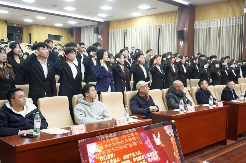 大会现场氛围庄重热烈,各项环节有序推进。大会顺利完成团学干部新老交替,象征责任的接力棒稳稳传递,彰显出学院学生工作薪火相传的传承力量。新述学子优秀事迹分享环节亮点纷呈,学子们用亲身经历诠释奋斗意义,以鲜活的榜样力量引领风尚,充分展现设艺学子锐意进取的新起点与新面貌。现场同步开展颁奖表彰与干部宣誓环节,学院领导与教师代表为新任团学干部颁发聘书,为优秀学子授予荣誉证书,以表彰激励先进典型,全体新任干部庄严宣誓,铿锵誓言中饱含服务学院、砥砺前行的初心与决心。