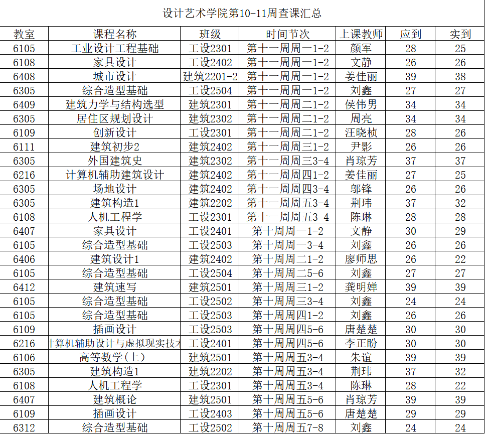 根据学院第10-11周课堂考勤数据统计,现将到课情况通报如下: