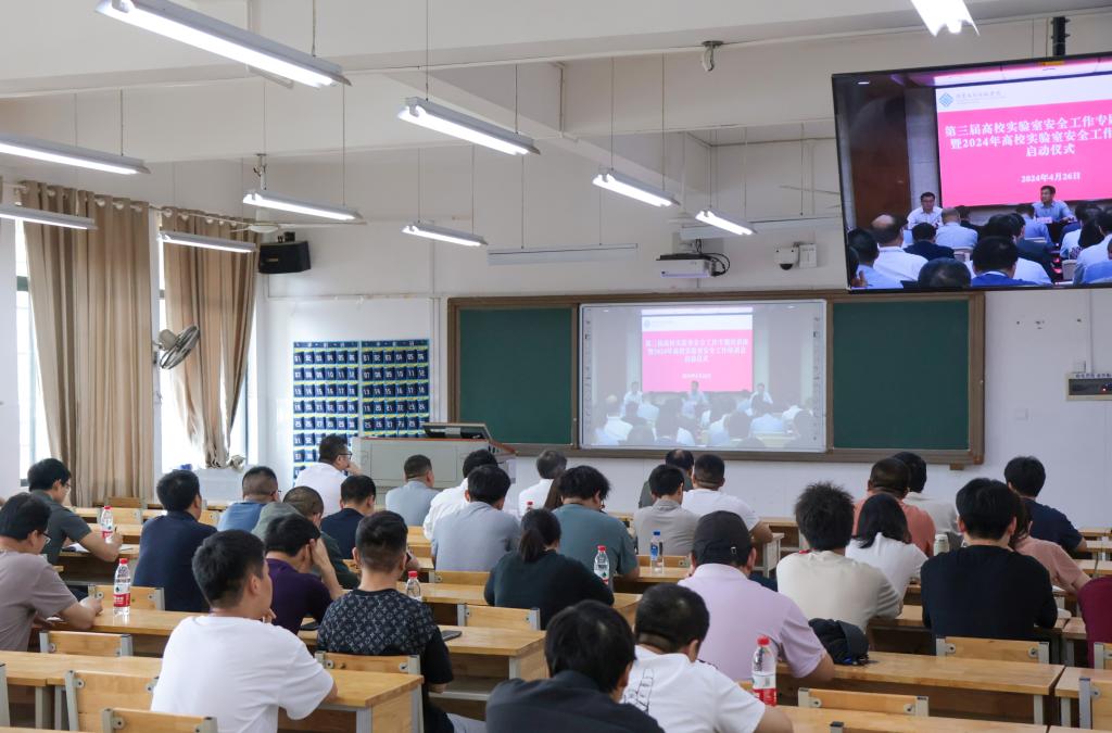 2024年4月26日下午,Beat365在社科楼108室组织收看了教育部科学技术与信息化司、高等教育司组织的高校实验室安全工作培训会的视频会议。Beat365分管教学科研工作的何建雄副校长与分管安全工作的谢柯副校长出席了此次会议。学校教务处、国有资产处、保卫处、科技与校企合作处的负责同志,各学院分管实践教学的院长、实验室主任、实验室安全管理人员,实验室技术人员以及参与实验实训教学的教师、学生安全员等参加了本次会议。