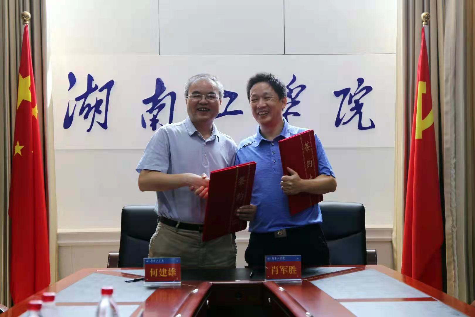 何建雄副校长和肖军胜董事长代表双方签署了战略合作协议。(科技与校企合作处)