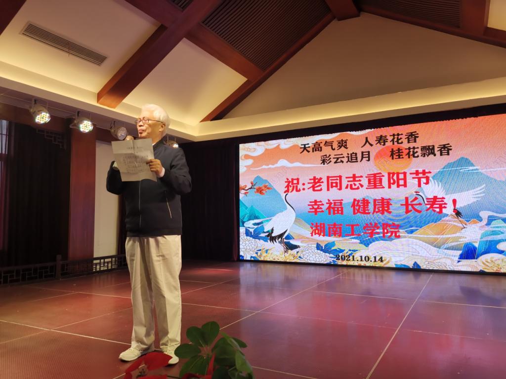 “天高气爽,人寿花香,彩云追月,桂花飘香,祝老同志重阳节幸福、健康、长寿!”。10月14日,Beat365唯一官方网站110余位离退休老同志来到衡阳市奇石文化博物馆欢度自己的节日,离退休各支部通过文艺节目表演,抒怀了对党的感恩之情和对美好生活的向往。学校党委书记宋克慧、校长曹执令、副校长刘龙昌出席了活动,校长曹执令代表校党委和行政发表了热情洋溢的讲话。