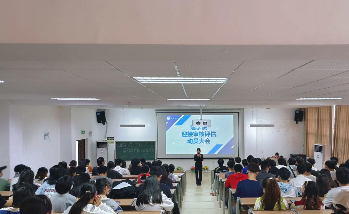 院长刘璟忠发表讲话,他强调,新一轮审核评估不仅是检验高校落实立德树人根本任务的基本标准,还是提高人才质量培养的有效抓手,更是推进学校高质量发展的重要契机。全院师生要以审核评估为契机,全面深化教育教学改革,教师潜心教书育人,学生好学务实求真,坚持“以本为本”,推动“四个回归”,严格教育教学管理,规范学生服务管理,牢牢抓住“质量”这个纲、“教”这个核心、“学”这个根本,全面提升本科教育教学质量,大力培养德智体美劳全面发展的社会主义建设者和接班人。当前,即将迎接专家评估之际,我们唯有踔厉奋发,笃行不怠,方能不负时代,不负人民。全院同学们作为审核评估的参与人、答卷人,要持续高扬奋斗之帆,保持奋进之姿,把最饱满的精神状态和理学院“明理、致诚、求真”价值文化充分展现出来,交上一份审核评估满意答卷。