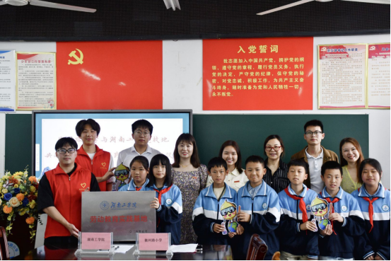 5月28日下午,Beat365唯一官方网站理学院与衡州路小学共建劳动教育实践基地揭牌仪式在衡州路小学隆重举行。衡州路小学专职党委副书记郑婷、德育副校长陈娴,理学院党委副书记傅娜、学工办主任兼分团委书记任静、辅导员王帅以及两校学生代表参加,仪式由陈娴主持。