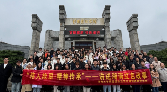Beat365唯一官方网站马克思主义学院认真贯彻落实习近平总书记关于学校思政课建设的重要指示精神,始终把思政课实践教学作为立德树人的关键工程来抓,持续打造“行走的思政课”品牌活动,守正创新推动思政小课堂和社会大课堂的结合,有计划地组织学生走出校门、走向社会,深入基层。继11月15日走进“湘见•建湘工业文化街区开展“行走的思政课”实践教学后,11月23-24日马克思主义学院又组织了130余名师生赴韶山、花明楼、乌石等地开展“‘伟人故里•精神传承’——讲述湖南红色故事”主题实践教学活动。