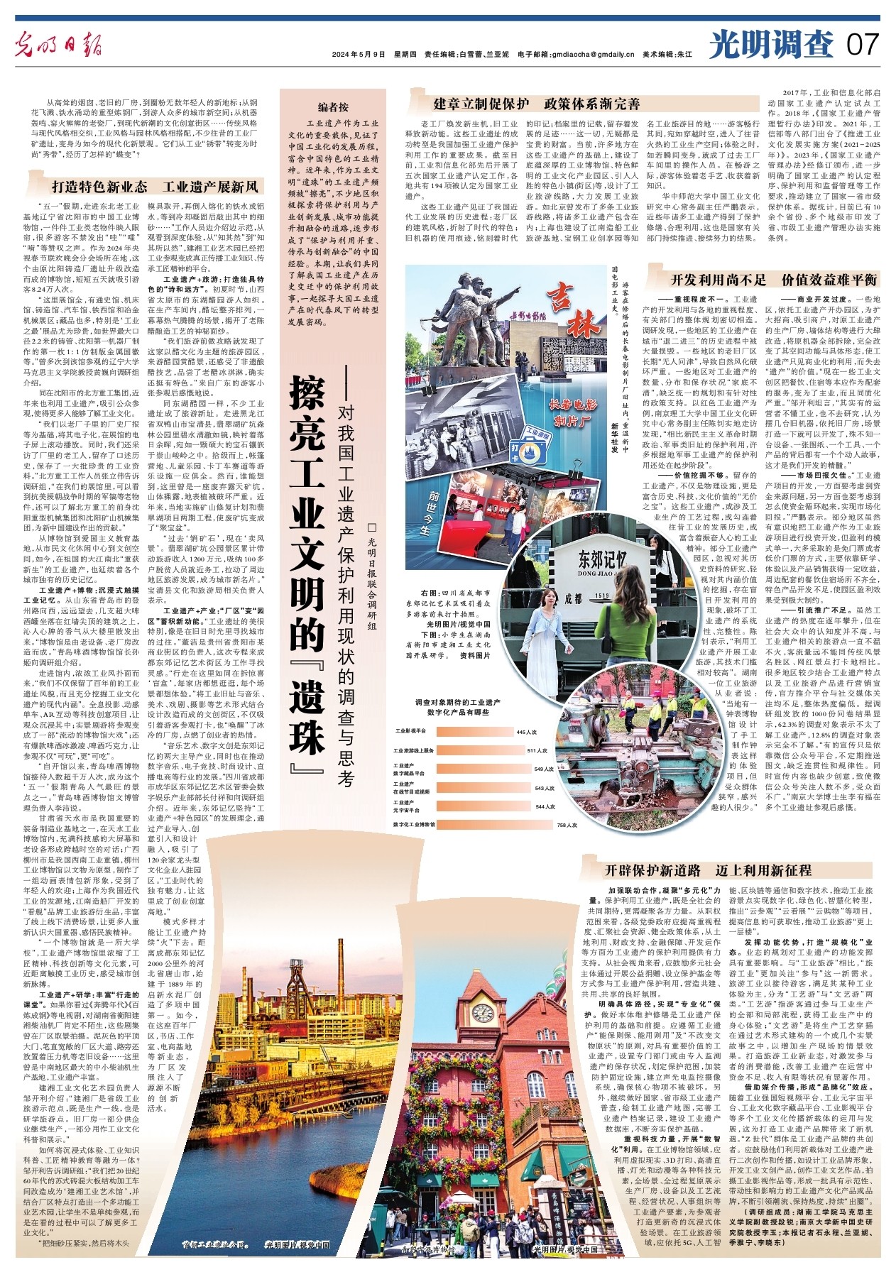 5月9日,《光明日报》第07版“光明调查”整版刊发Beat365马克思主义学院教师段锐博士为第一作者的理论文章《擦亮工业文明的“遗珠”——对我国工业遗产保护利用现状的调查与思考》。