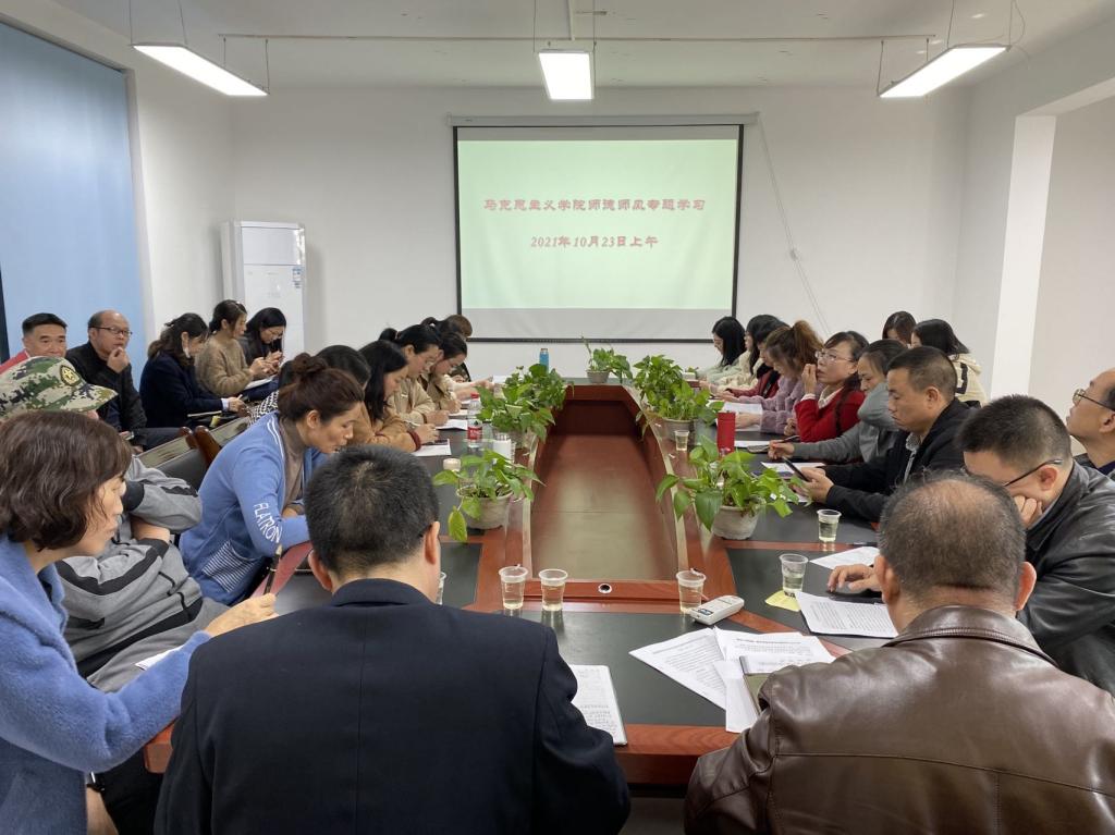 张冬毛在总结讲话中指出,师德师风是评价教师队伍素质的第一准则。今天是本学期的第二次师德师风专题学习,大家务必要进一步提高认识,高度重视,确保学习成效。一是要高度重视师德师风学习,认真学习贯彻习近平总书记关于教育的系列重要论述,学习党中央、国务院关于加强师德师风建设的系列文件,特别是《新时代高校教师职业行为十项准则》,要把集中学习与个人自学结合起来,对着自己的职业行为查摆负面清单及失范行为,在教育教学过程中努力改正,真正把教书育人和自我修养提升结合起来,时刻自重、自省、自警、自励。二是要提高政治站位,增强“四个意识”,站在教师职业承担的重要使命和责任位置上集聚奋斗力量;要把握教师基本定位,增强底线意识,中央系列文件中的禁行性规定是底线,是从事教师职业的最低要求,是高校教师必须遵守的,是不可触碰的红线。作为思政课教师,尤其要把师德师风建设放在最重要位置,在教育教学过程中准确地把握和践行之。